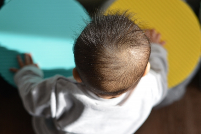 実際に当院に来院された生後5ヶ月の赤ちゃんのケースをご紹介します。後頭部の右側が明らかに平坦化しており、小児科では「ヘルメット治療を検討してください」と言われていました。保護者の方は費用面での不安もあり、まずは整体で改善できないかと当院を訪れました。