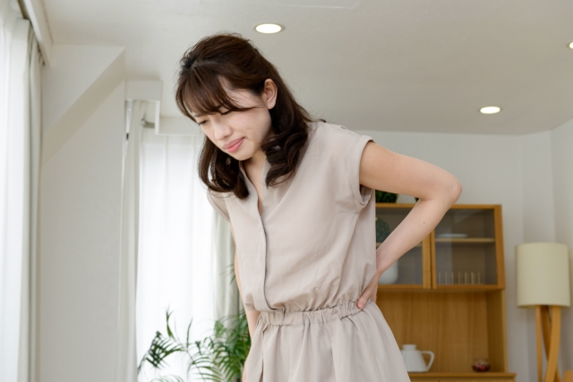 妊娠初期から子宮はゆっくりと大きくなり始めます。まだ目に見える変化ではないものの、子宮を支える靭帯が引き伸ばされることで、腰やお尻のあたりに鈍い痛みや重さを感じる方がいます。「歩くたびに腰が重い」「長時間座っていると腰が張る」という症状がこれにあたります。
