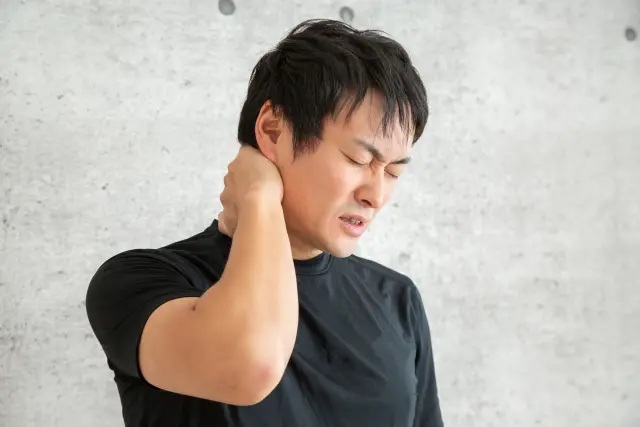 骨盤が後傾すると背中が丸くなり、それを補おうとして首が前に出ます。この状態が長時間続くことで、首から肩にかけての筋肉が常に緊張した状態になり、血流が悪化して痛みやこりが慢性化していきます。むちうちの患者さんの中には首だけでなく腰痛も併発している方が多いのは、こうした全身の姿勢バランスの崩れが原因なのです。